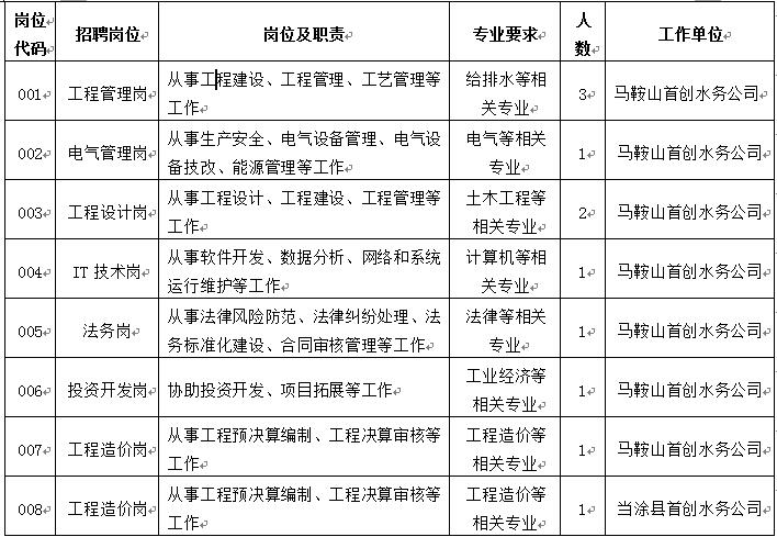 因工作需要,馬鞍山首創(chuàng)水務(wù)有限責(zé)任公司正式啟動(dòng)2020年度高校畢業(yè)生招聘工作,面向安徽省內(nèi)外各高等院校誠(chéng)聘英才。